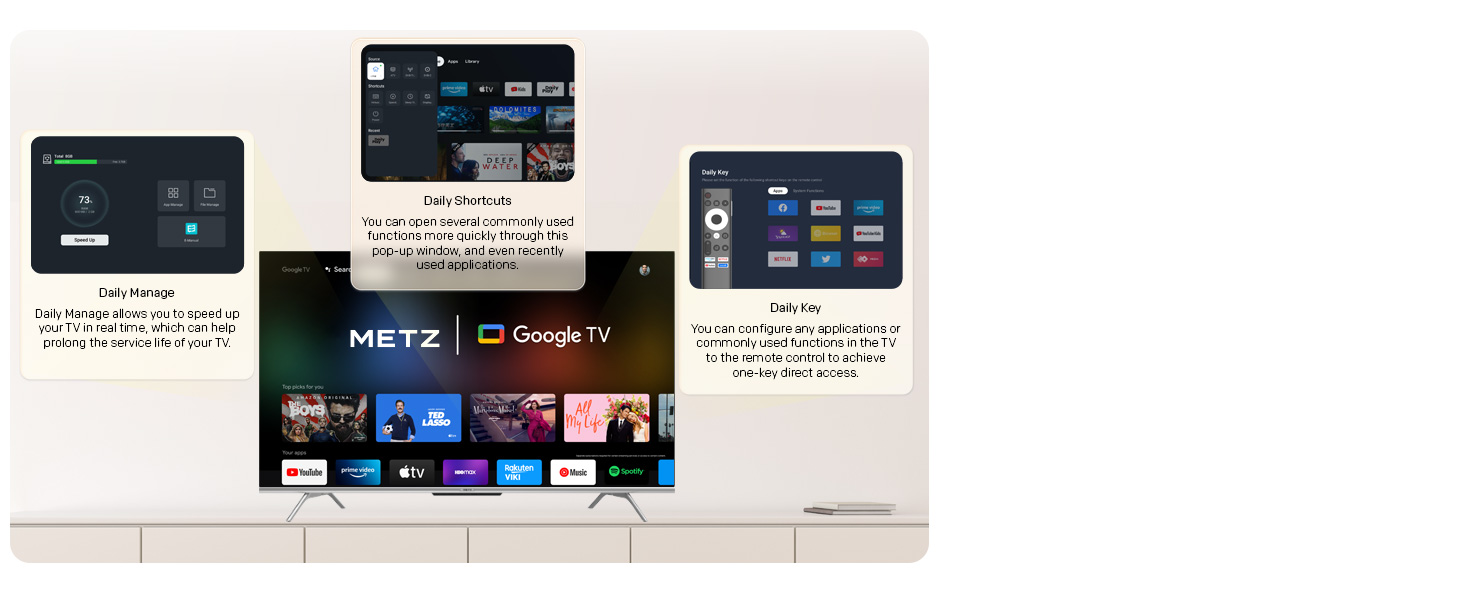 Audio avanzado postprocesamiento para su contenido diario que ofrece un sonido 3D inmersivo, todo desde los altavoces de televisión.